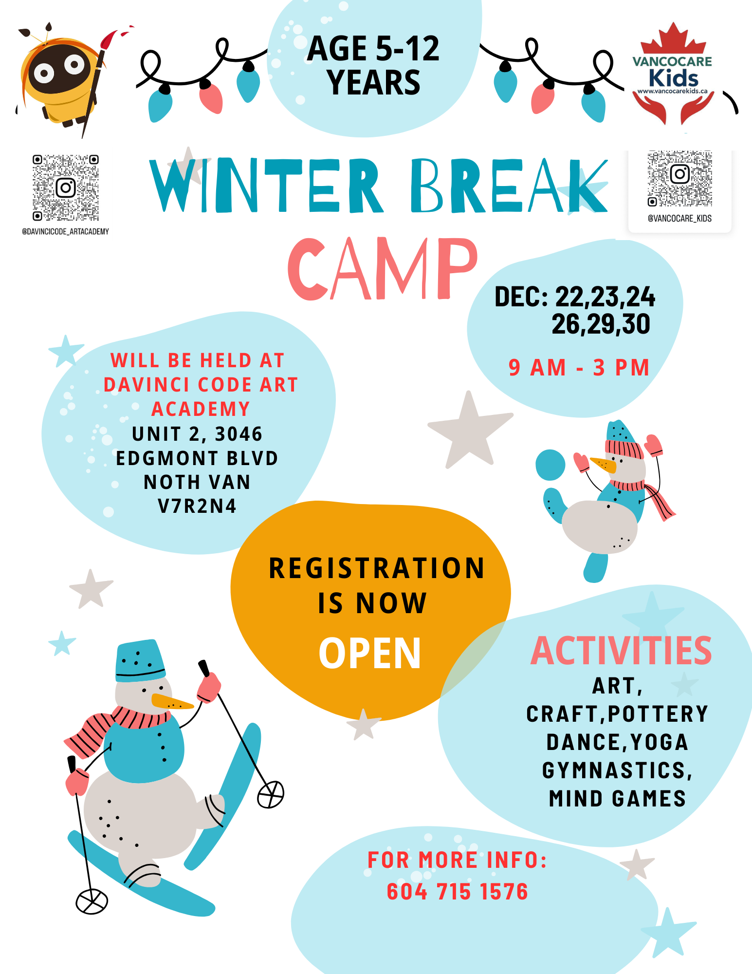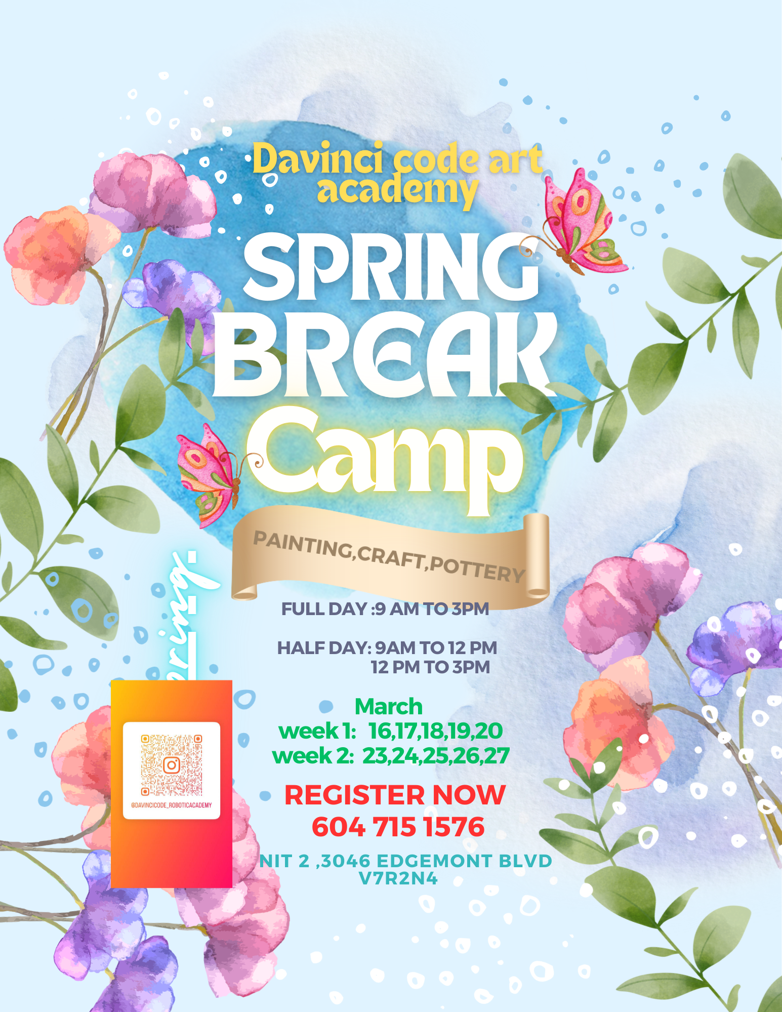 Calling all creative campers ages 5-12! Unleash your inner artist this week at Davinci code art academy . Led by instructors Sara Mahjouri and Farahnaz Samari, campers will explore acrylic painting, collage creations, working with resin, fabric design, and pottery making, all amidst the beauty of nature. Don’t miss this incredible opportunity for your child to develop their artistic skills, experiment with different art forms, and create lasting memories in a fun and supportive environment! Register today – spaces are limited!